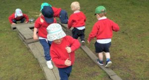 Highfield Pre-School Foundation children navigate an obstacle course